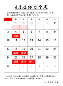 2025年8月度店休日JPEG